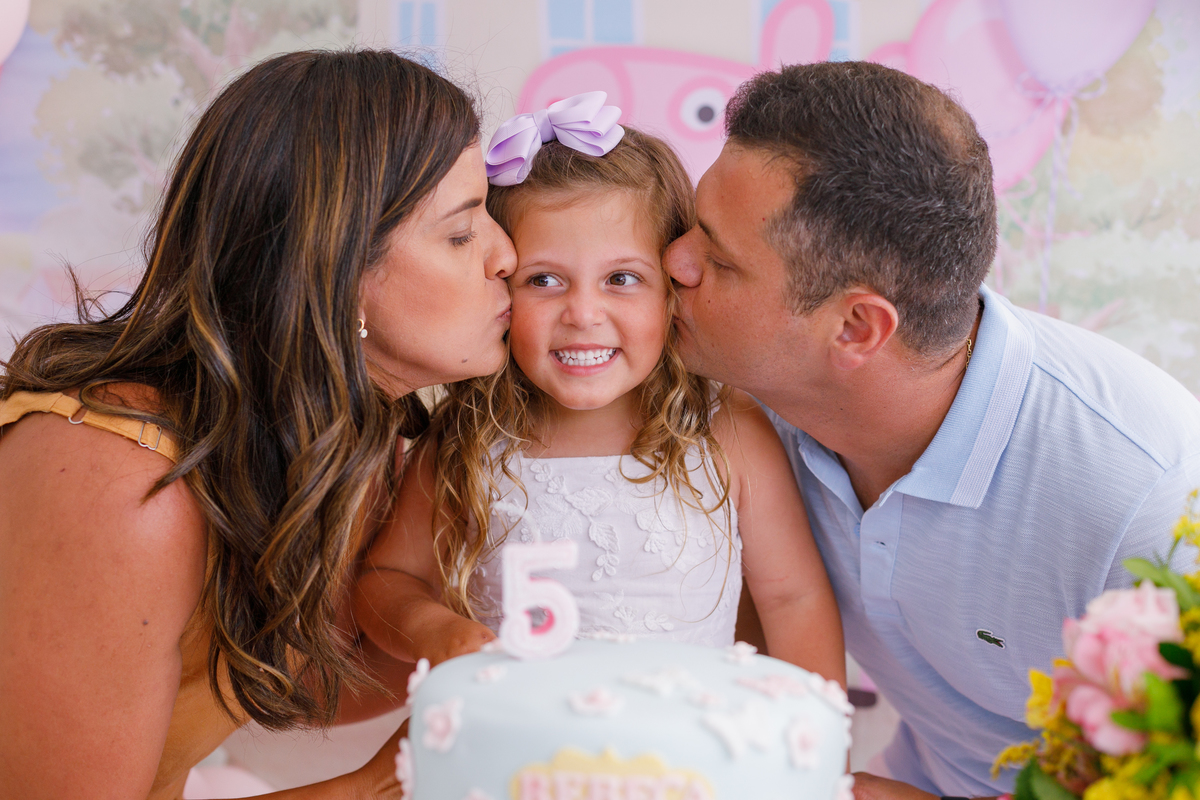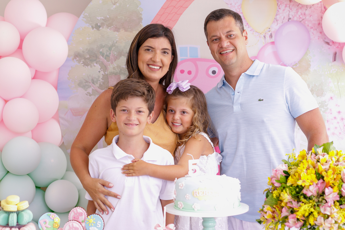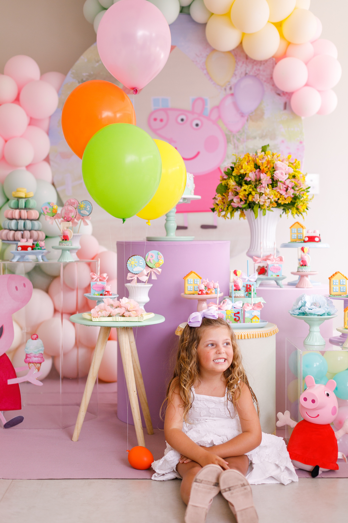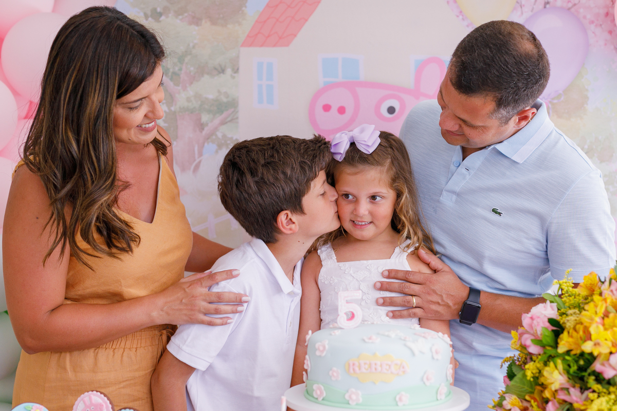 Conheçam a pequena Rebeca que completou 5 anos com uma festa fofa da Peppa Pig.