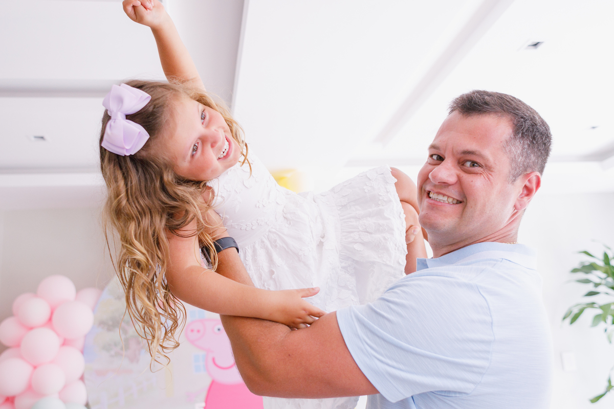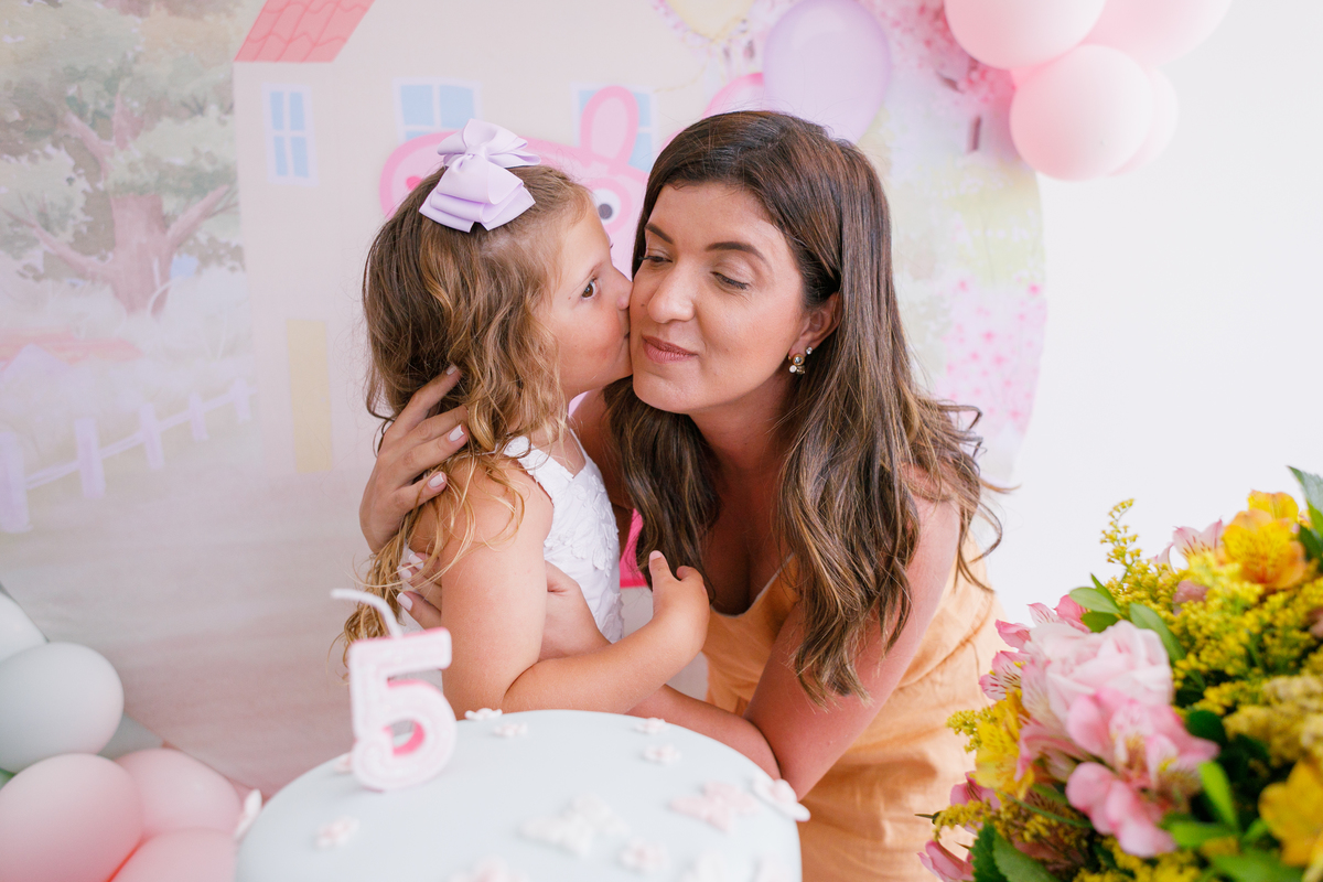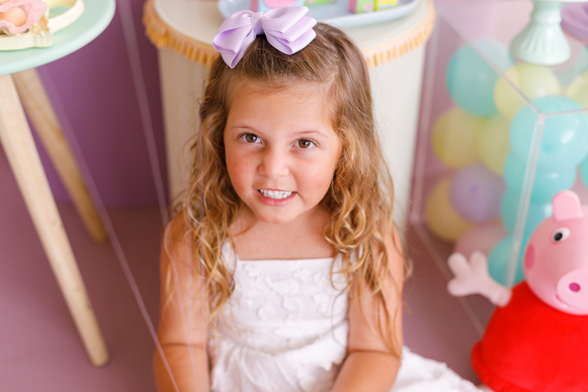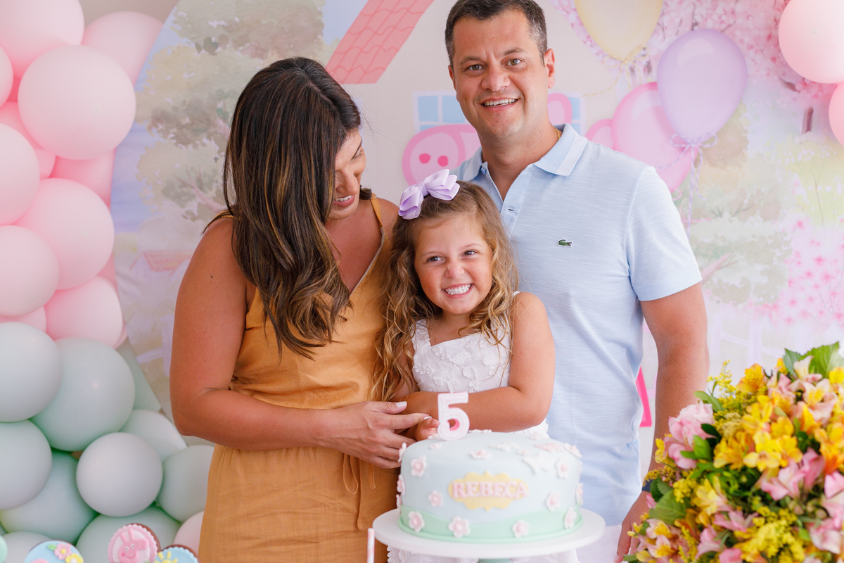 Conheçam a pequena Rebeca que completou 5 anos com uma festa fofa da Peppa Pig.