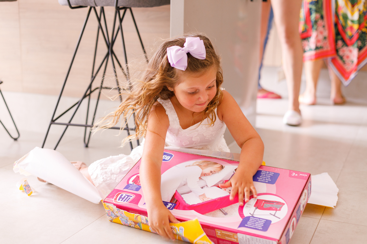 A festa em casa tem algumas vantagens como aproveitar para retratar um pouco da rotina da família. Aproveitamos para fazer uns clicks fofos da Rebeca que também ajudou na montagem da decoração dela.